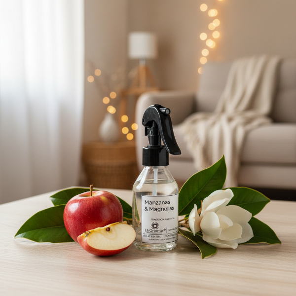 Nuestro spray de Manzanas & Magnolias es la combinación perfecta entre la nostalgia de la fruta recién cosechada y la elegancia de las flores blancas. Una fragancia diseñada para quienes buscan un hogar que se sienta tierno, luminoso y siempre acogedor.